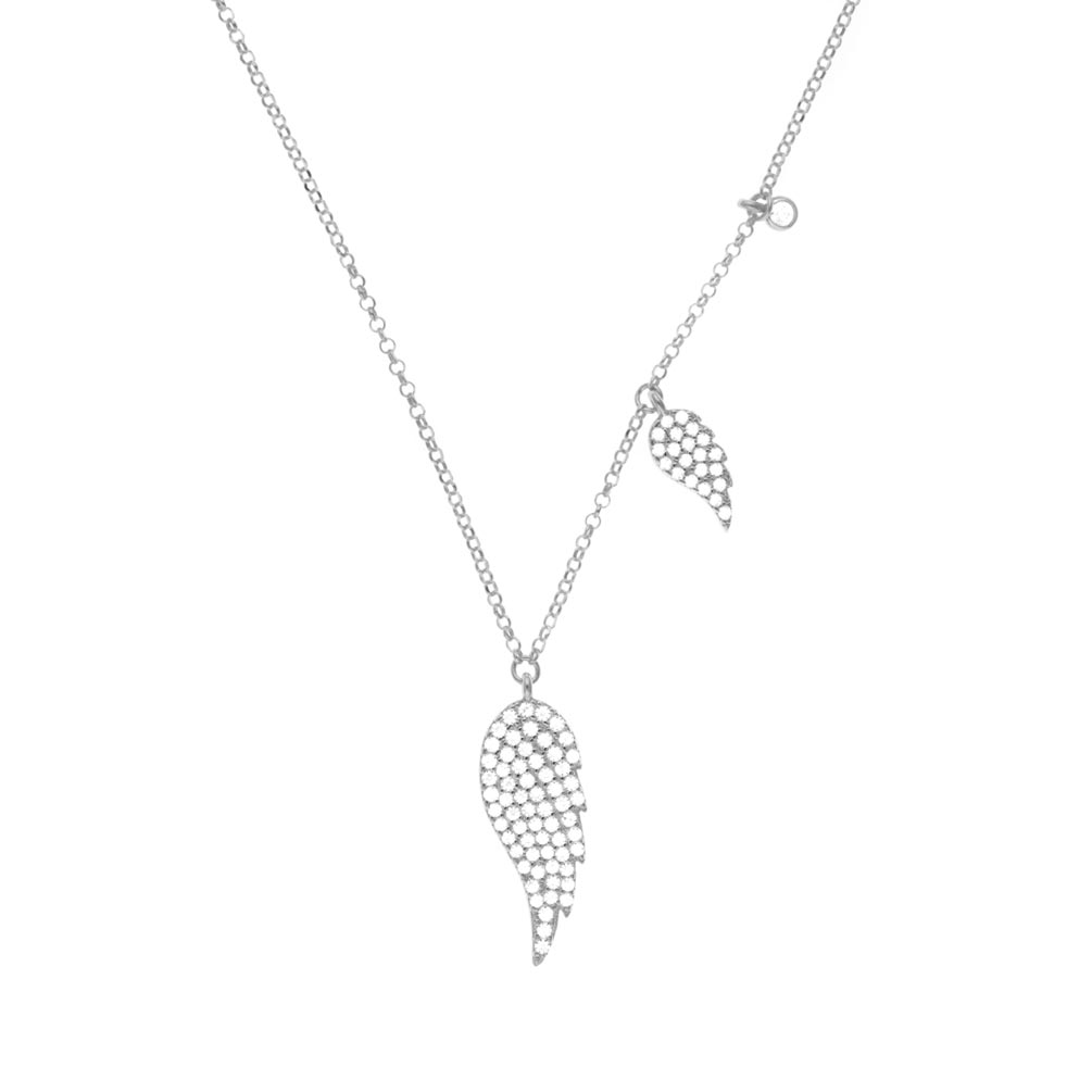 Beschwingte Kurshuni Halskette mit funkelnden Engelsflügeln aus Sterling Silber und kleinem Zirkonia-Anhänger!