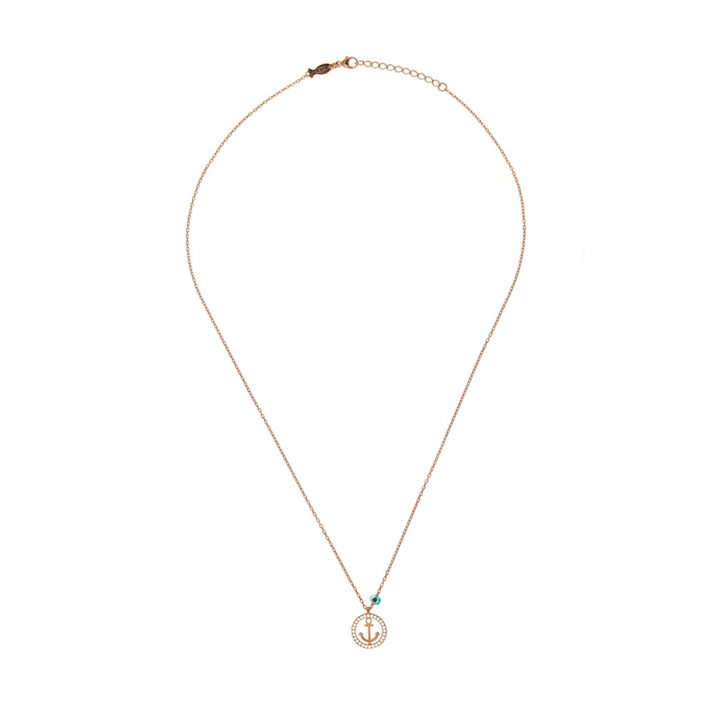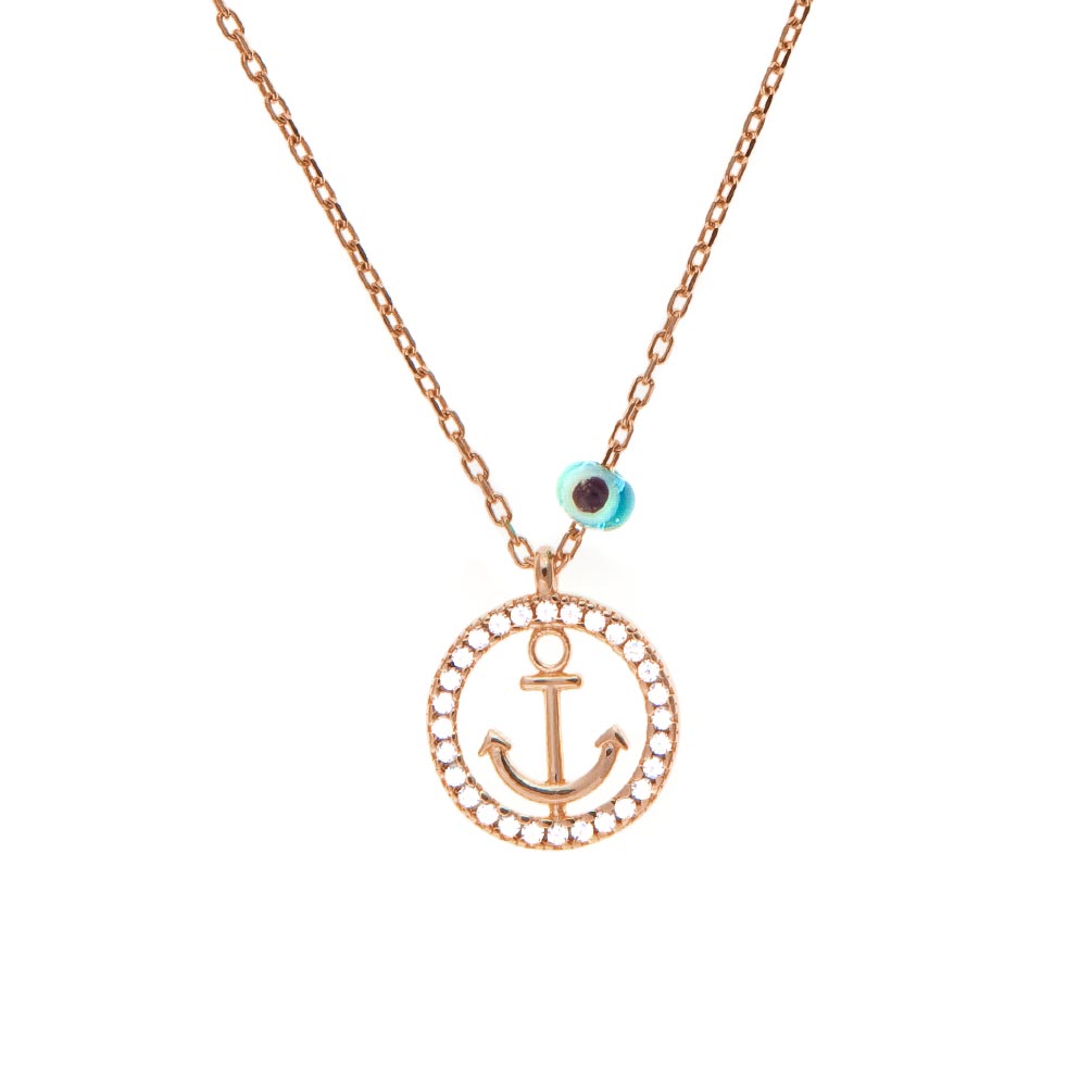 Maritime kleine Kurshuni Halskette in Roségold mit Anker in einem funkelnden Kreis aus Zirkonias!