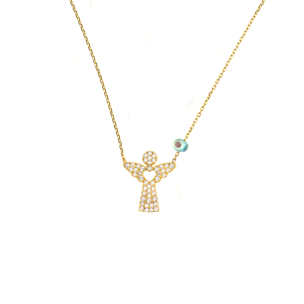 Herrliche Kurshuni Halskette aus vergoldetem Sterling Silber mit funkelndem Engels-Anhänger!
