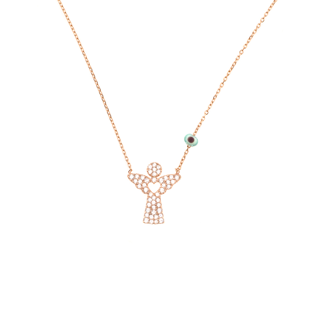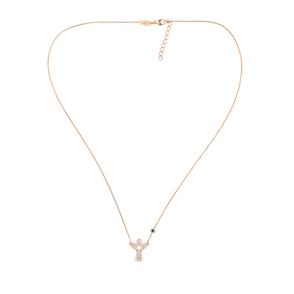 Herrliche Halskette aus rosévergoldetem Sterling Silber mit funkelndem Engels-Anhänger!