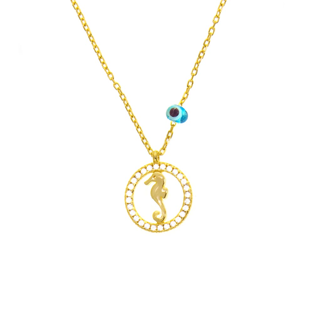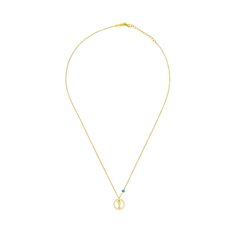 Entzückende, goldene Halskette von Kurshuni mit bezauberndem Seepferdchen in einem Ring aus funkelnden Zirkonias!