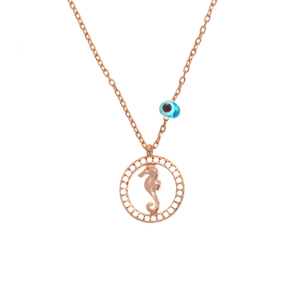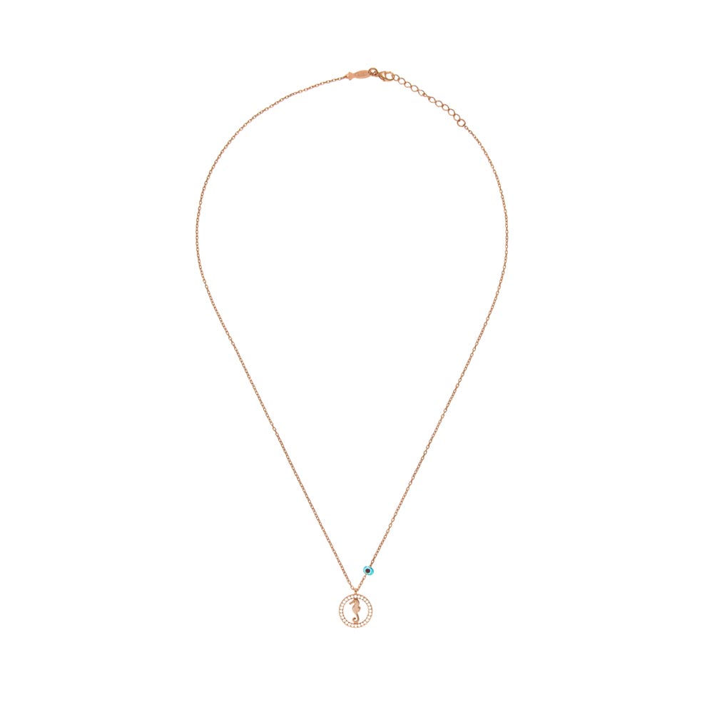 Entzückende, roségoldene Halskette von Kurshuni mit bezauberndem Seepferdchen in einem Ring aus funkelnden Zirkonias!