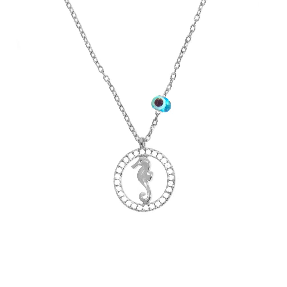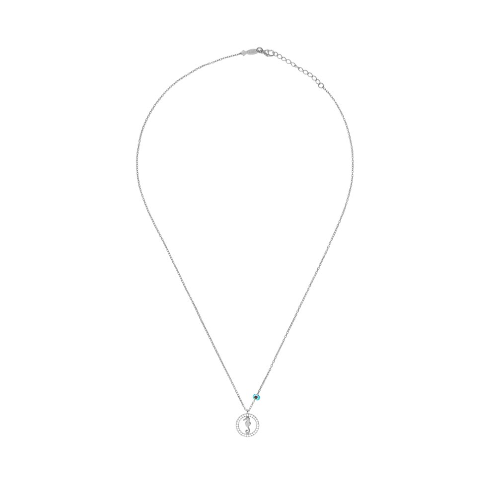 Entzückende Kurshuni Halskette aus Sterling Silber mit bezauberndem Seepferdchen in einem Ring aus funkelnden Zirkonias!