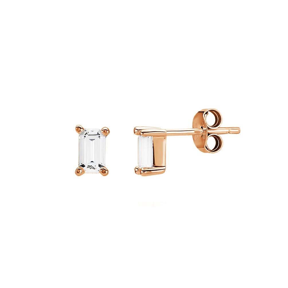 Großartige kleine, roségoldene Kurshuni Ohrstecker mit Zirkonias in Baguette-Schliff!