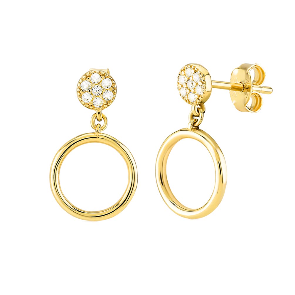 Großartige, goldene Kurshuni Ohrstecker mit zirkonia-besetzten Plättchen und Gold-Ringen!