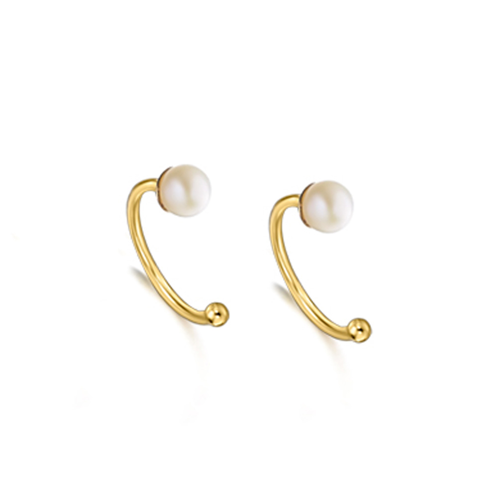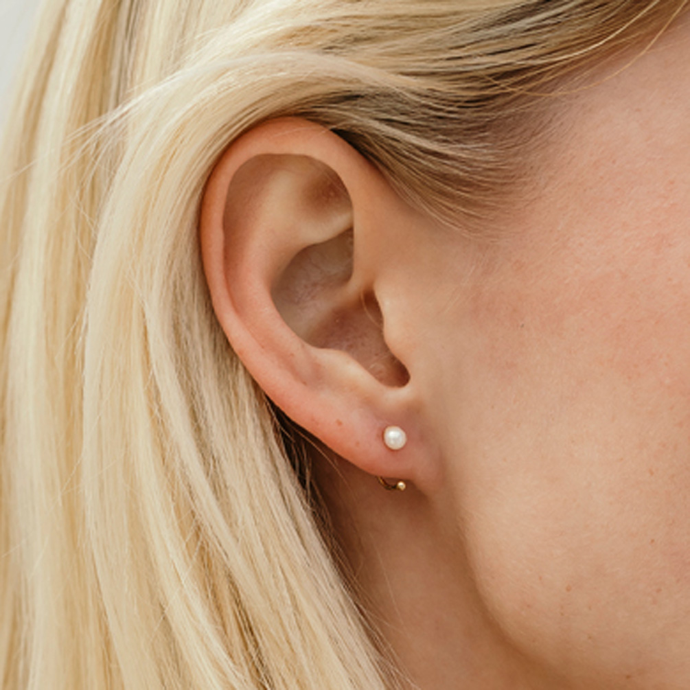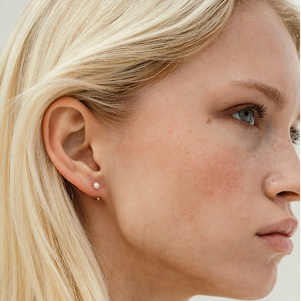 Die eleganten und verspielten Ohrringe von LECARRÈ aus 18 kt Gold mit schimmernden Perlen werden durch das Ohr geführt, wodurch die kleine Goldkugel als besonderes Glanzlicht frei unter dem Ohr zu schweben scheint!