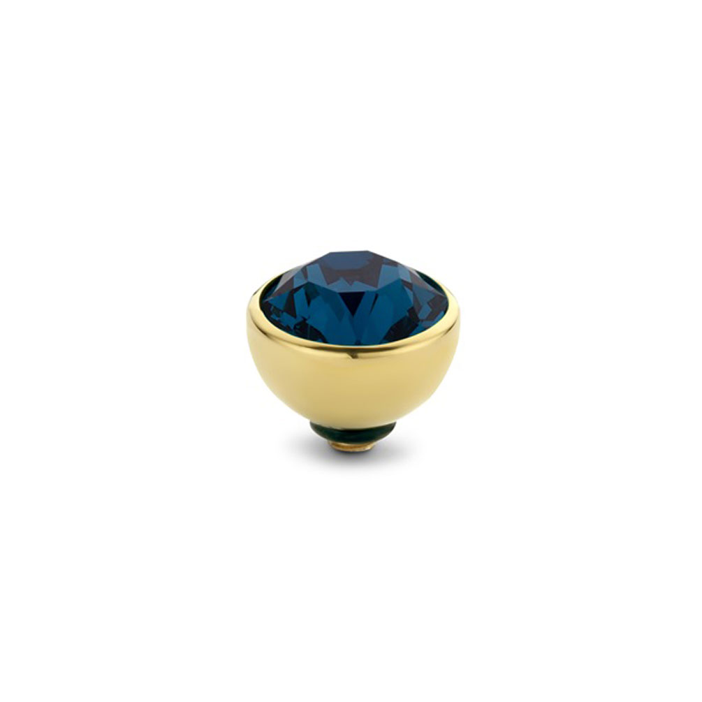 Runder, facettierter MelanO Ringaufsatz mit dunkelblau glitzerndem Zirkonia in goldener Fassung, kombinierbar mit allen Twisted Ringen!