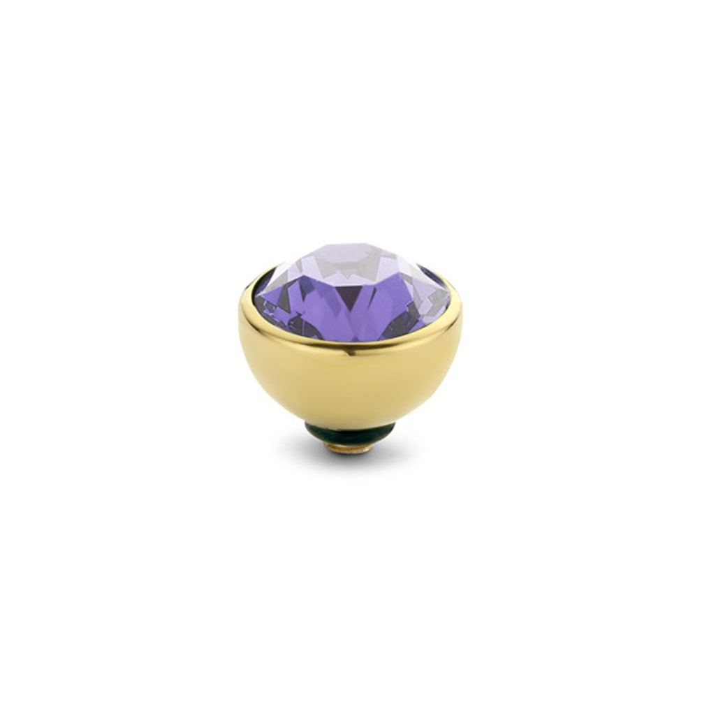 Klassisch facettierter MelanO Ringaufsatz mit rundem, blau-glitzerndem Zirkonia in goldener Fassung für alle Twisted Ringe!