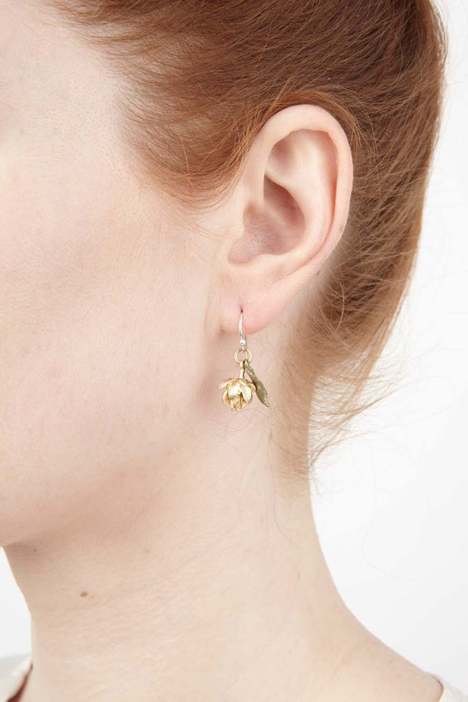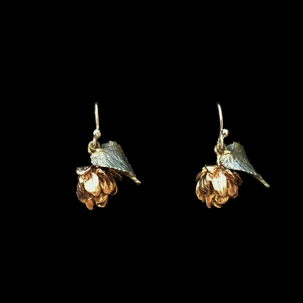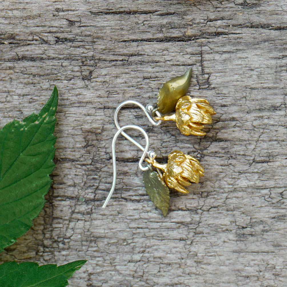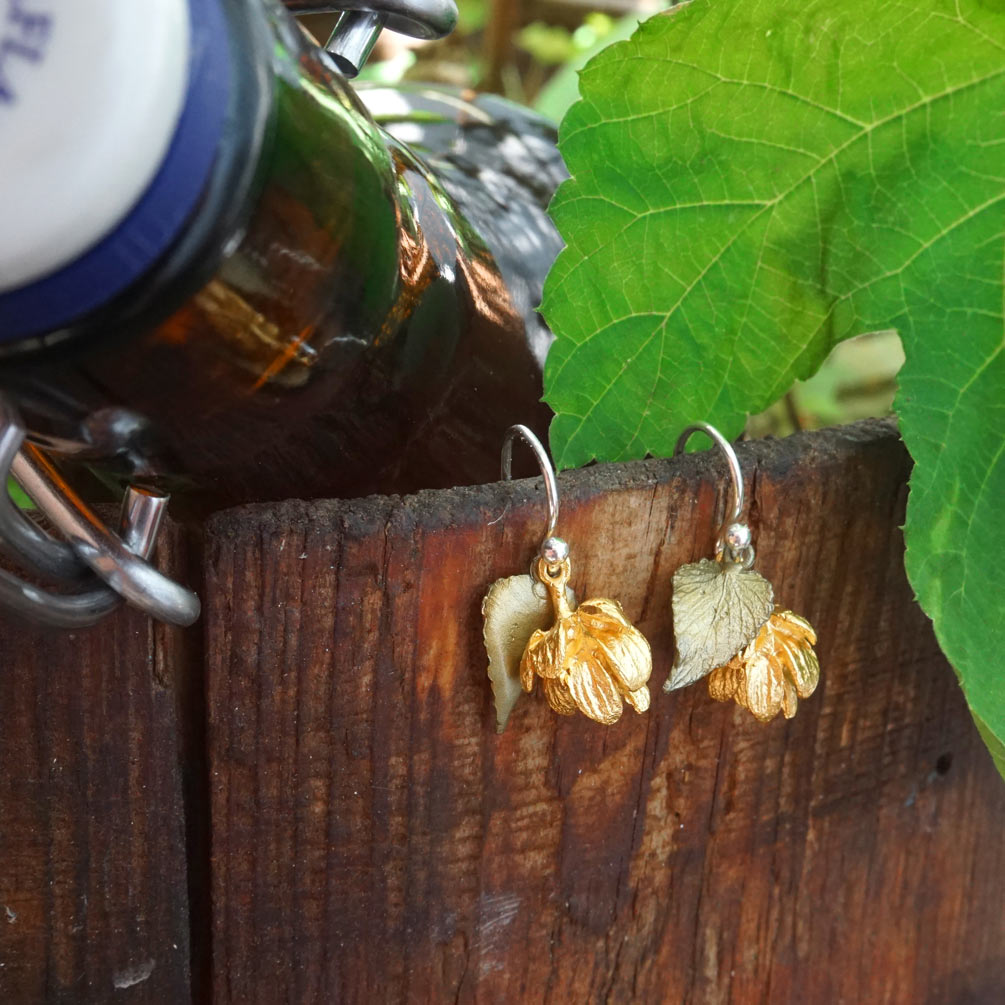 Umwerfende Michael Michaud Ohrringe mit fantastisch gearbeiteten Hopfen-Dolden in Gold und filigranen Bronze-Blättern!