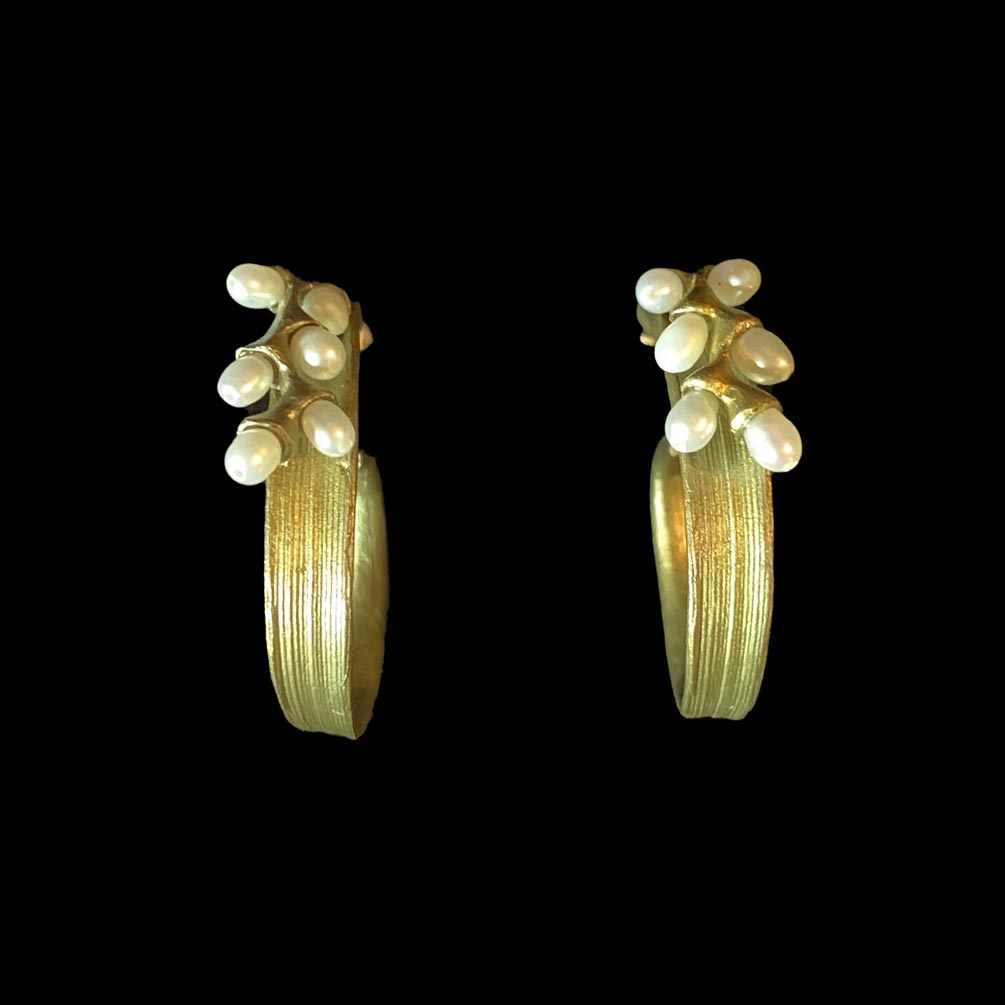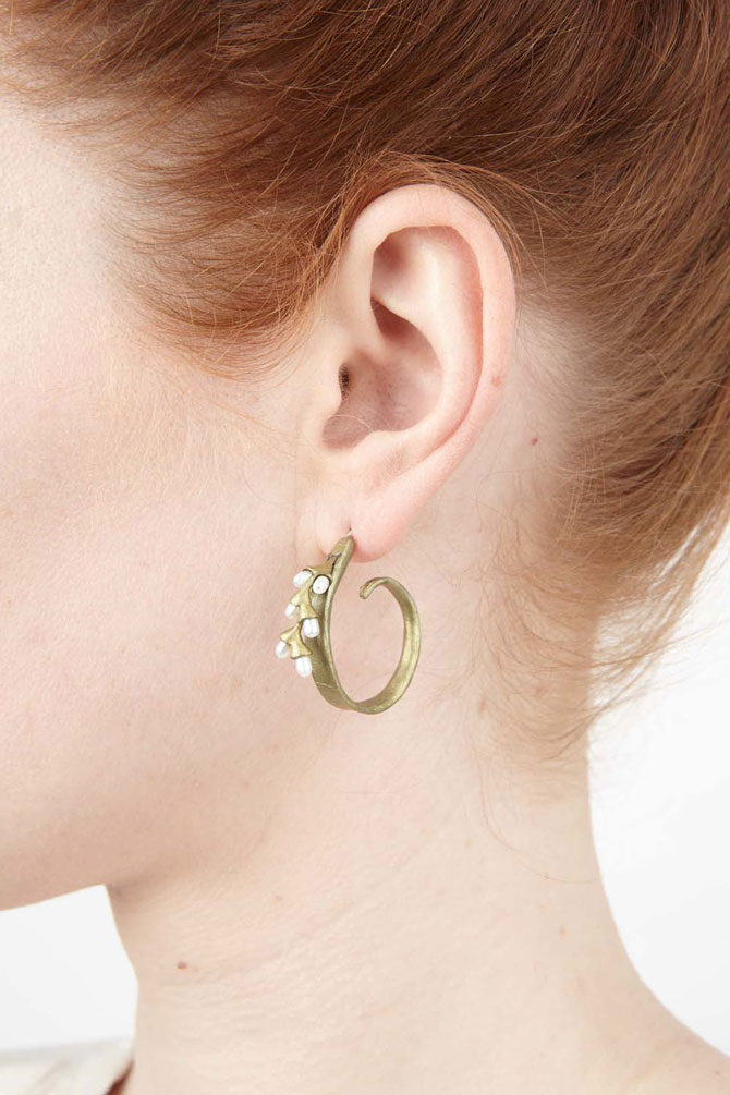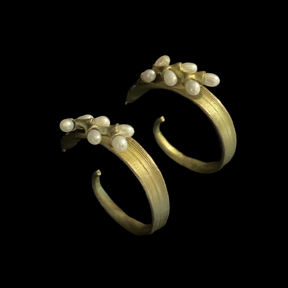 Fantastische, elegante Creolen von Michael Michaud mit geschwungenen Reis-Ähren aus Bronze und leuchtenden Perlen!