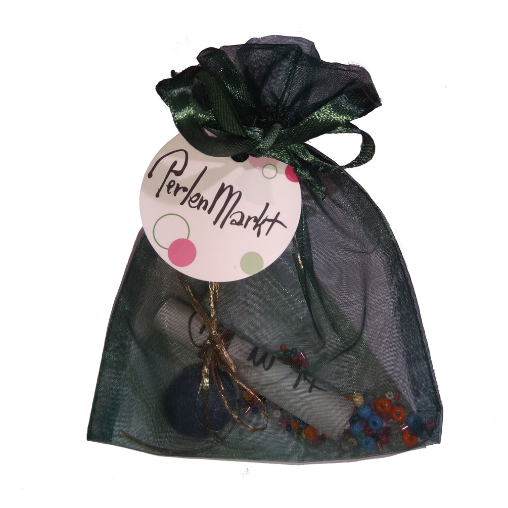 Oder einfach den Perlenmarkt OnlineShop verschenken! Der Gutschein wird gerollt und bekommt ein hübsches Schleifchen. Ab in ein kleines Organza-Schmucksäckchen in bunten Farben, zwei bis drei Löffel Perlen dazu, rundes Perlenmarkt Schildchen dran, fertig!