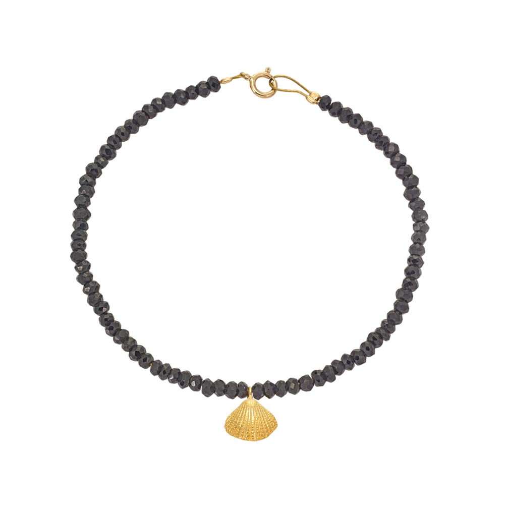 An diesem wundervollen Armband aus schwarzen Spinell-Perlen hängt eine wunderschöne, fantastisch gearbeitete Jakobsmuschel als Anhänger. Natürlich handgefertigt von Krinaki Jewelry!